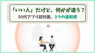 トップページ X Facebook はてブ LINE コピー 2025.08.07 マッチングアプリ 【50代マッチングアプリ】初対面で感じた「3つの違和感」。いい人なのに2回目がない理由 2026.02.28 マッチングから2ヶ月でようやく!50代が初対面前に抱くLINE交換の不安と対策 2026.02.26 50代マッチングアプリ|臆病な私が「2度目も会う」と決めた理由 2026.01.122026.01.25 50代マッチングアプリ。初対面後にLINEが止まった「本当の理由」 2025.04.232026.01.25 50代のマッチングアプリはヤバい?恥をかかないための3つの秘訣 2025.04.202026.01.25 旅行・お出かけ 高崎線で試した!JRE BANKの無料グリーン券をモバイルSuicaで発券する全ステップ 2026.01.082026.02.10 センチュリーマリーナ函館 一人旅ブログ!4割引新幹線テクニック 2025.11.162026.02.10 センチュリーマリーナ函館の朝食を一気見!幻の巣蜜に感動した50代一人旅ブログ 2025.10.302026.02.11 【じゃらん1000P】ホテルディナー1667円!スイーツ盛り放題体験 2025.07.032026.02.12 どこかにビューーン上田・長野2泊3日!温泉と馬肉グルメ旅【旅行記】 2025.05.162026.02.14 暮らしのヒント 漆塗りのお椀は修理できる?「拭き漆」で蘇る、12年越しの感動体験記 2026.01.22 ドラム式洗濯機が揺れる!パナLXシリーズに防振マットを試した格闘記録 2025.12.312026.01.04 タオル研究所「自然なやわらかさ」024番。洗濯後の肌触り、収納例など正直レビュー 2025.09.232026.01.24 備蓄米の保管場所・保管方法に困ったら!無印良品トタンボックスで解決 2025.09.132026.02.11 50代の生き方ブログ!3つの自由を手に入れるヒント 2025.09.072026.02.11