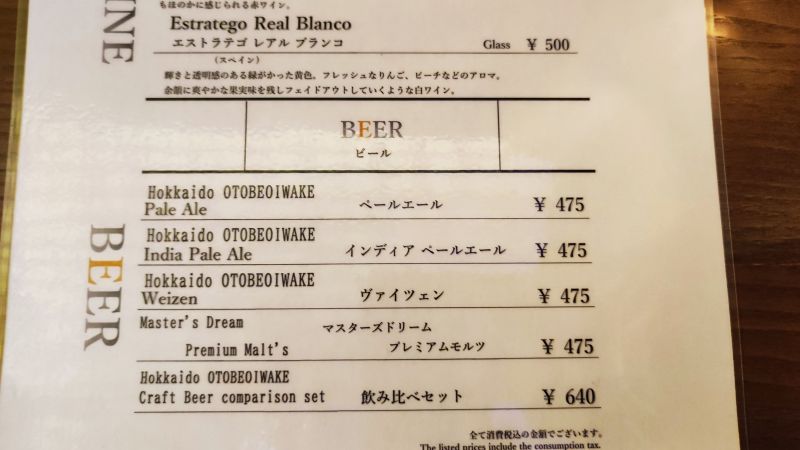 ホテル1Fにあるバー「ボイジャー」では北海道産のクラフトビールやワインを気軽に飲むことができます。