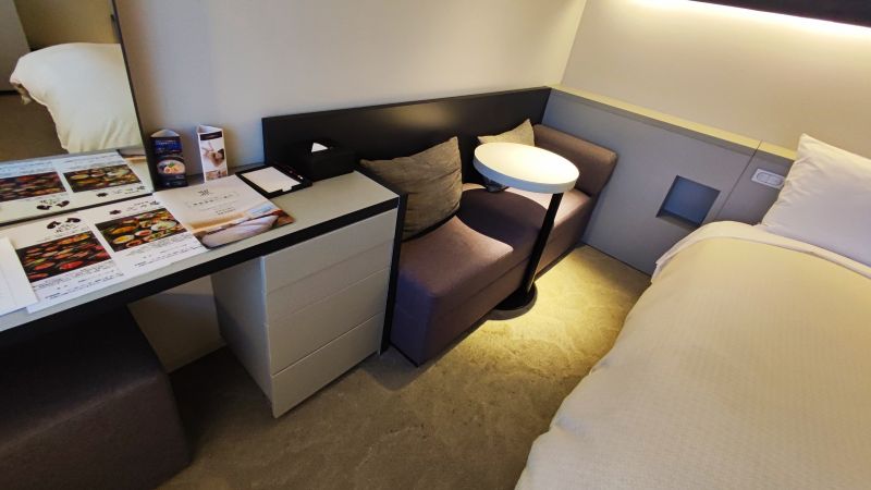 客室は以下の写真のとおり、ベッドスペース、リラックススペース、水回りといった各エリアが機能的に配置されており、