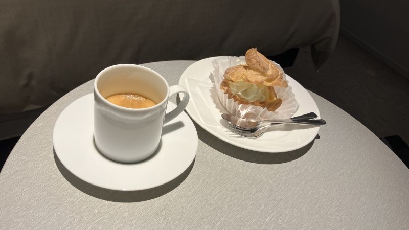 部屋のマスターオリジンコーヒーと一緒にいただいたのが、函館の素材にこだわった人気の生シューです。これがまた絶品で!