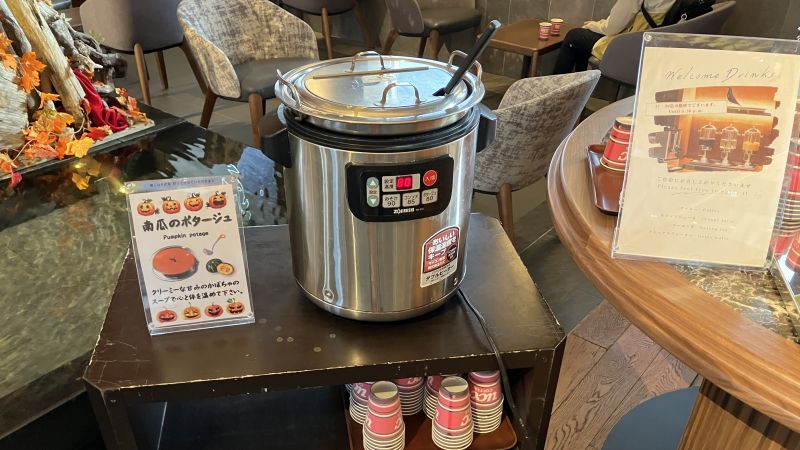 寒い日や季節によっては、今回のカボチャのポタージュのような温かいスープのサービスがあるようです。